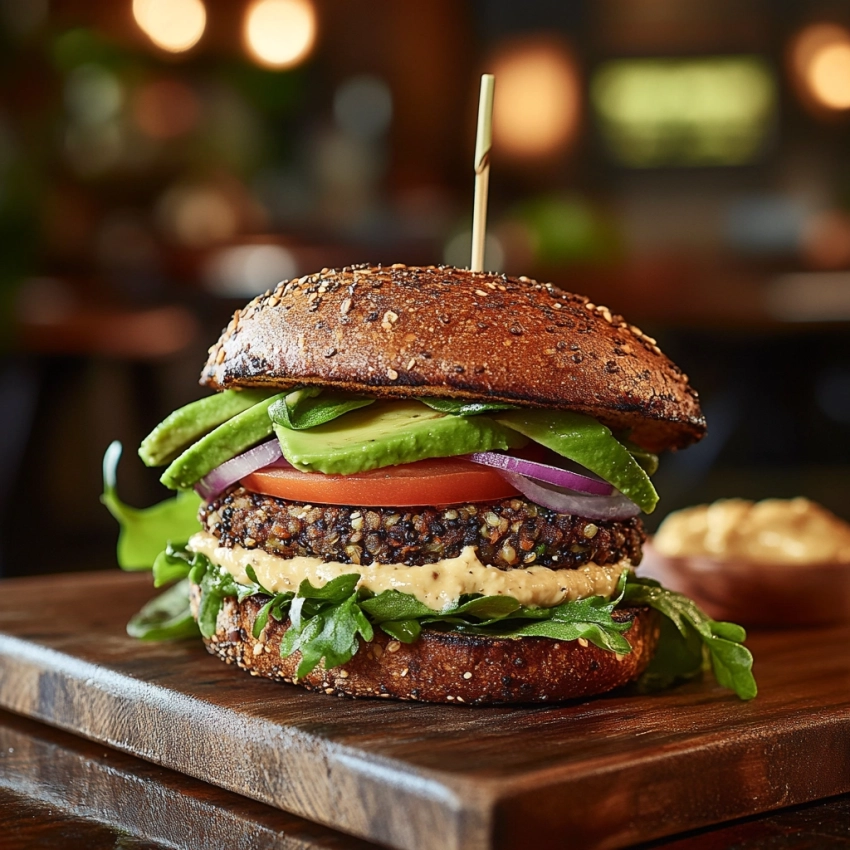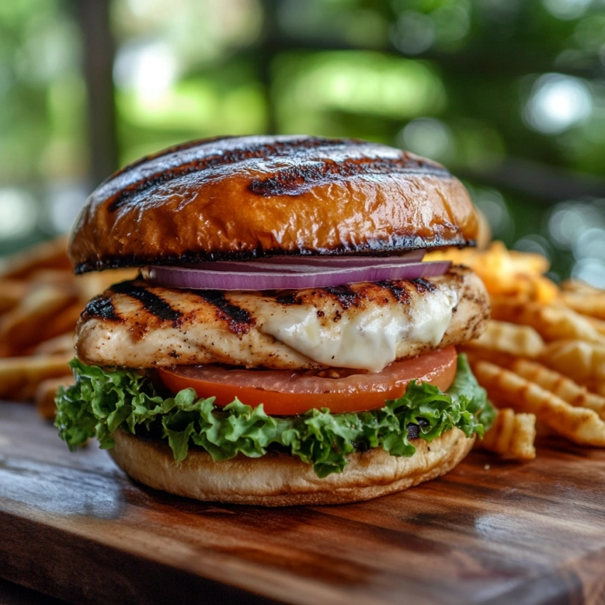 Gegrilltes Hähnchenfilet, Avocado-Creme, Rucola, Tomate, rote Zwiebeln, Limetten-Mayo